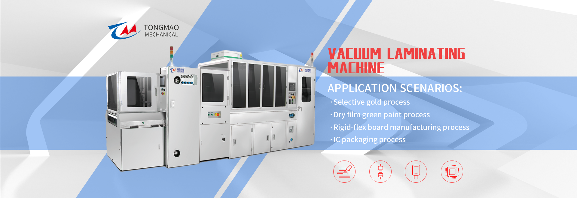 Dongguan Tongmao Machinery Equipment Co., Ltd. was established in 2010 and is located in Shangsha, Chang'an, Dongguan City, Guangdong Province. It is a professional independent R&D, manufacturing and sales of laminated automation equipment suppliers. Its products are widely used in PCB, FPD, TP, semiconductors, etc. Many areas.